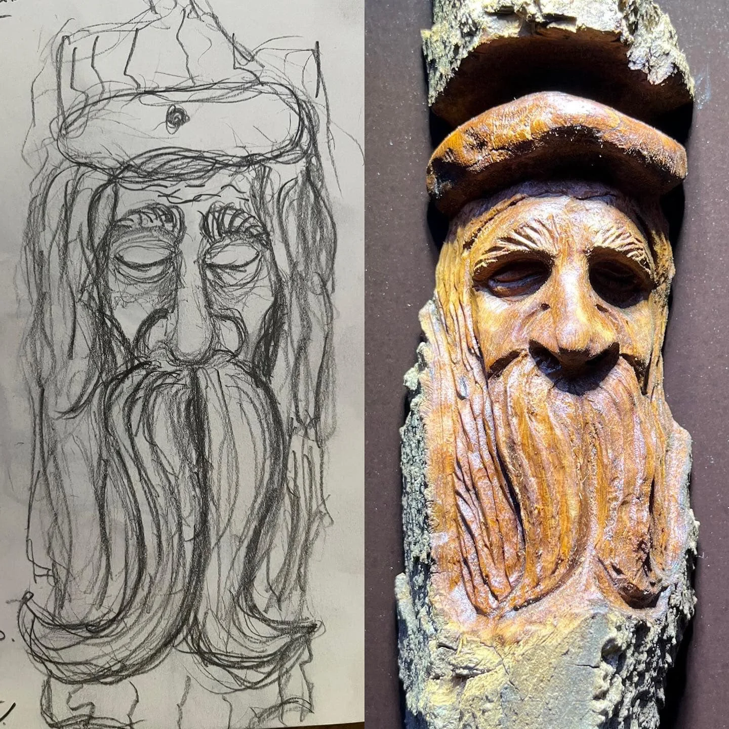 Modelez des visages inspirés des arbres et de leur texture.